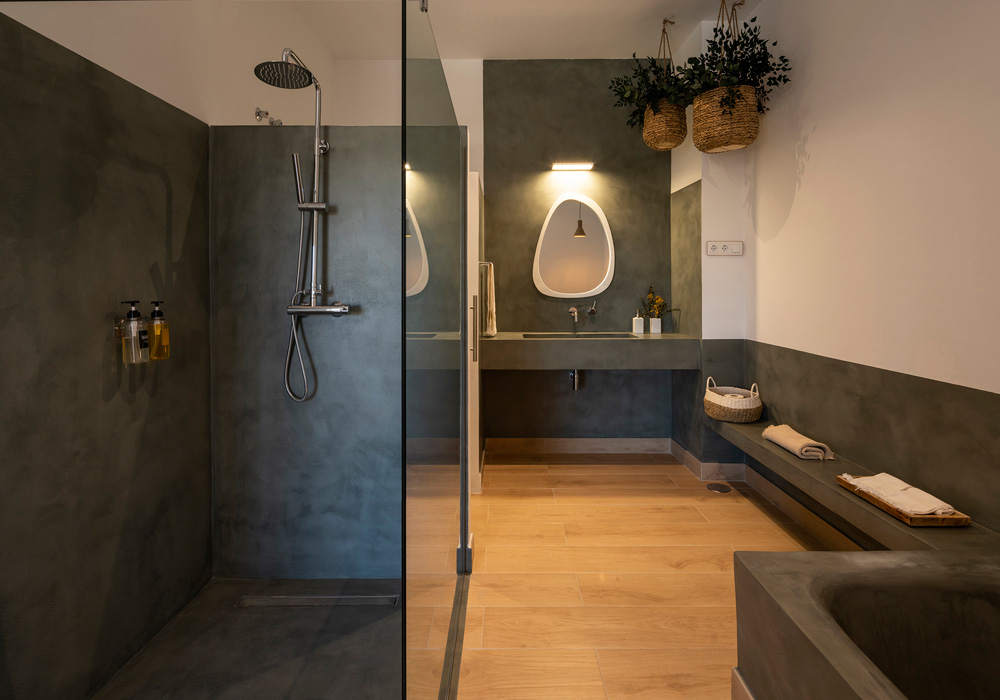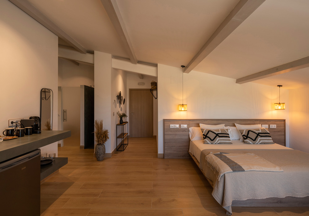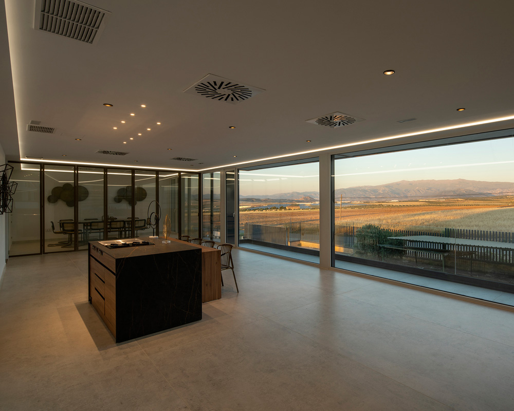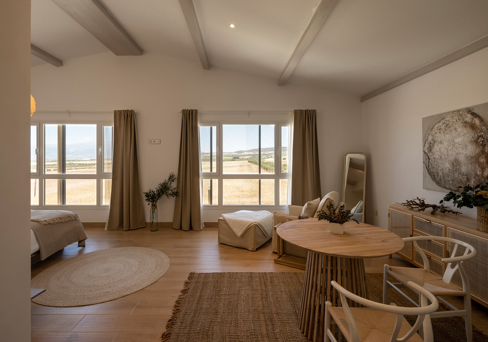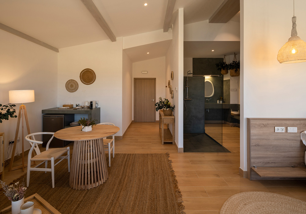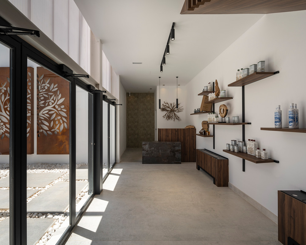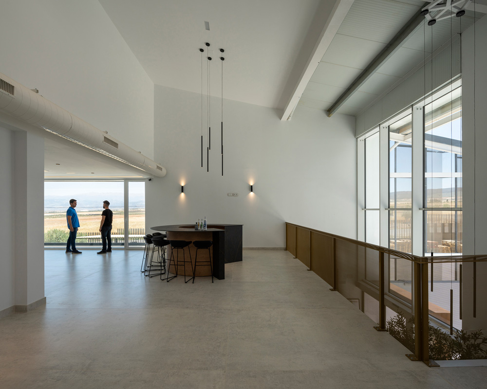 Hinter dieser Hauptfassade befindet sich der Eingangshof, der nicht nur die verschiedenen Gemeinschaftsräume aufteilt, sondern auch dazu beiträgt, jeden Winkel mit einer unglaublichen Helligkeit zu durchtränken. In dieser ersten Halle befinden sich die Büros, die Räume für die Arbeiter, die Versammlungsräume und der Laden, um den Service für die Olivenmühle zu gewährleisten und den Besucher über eine Treppe zu dem Gang zu führen, der die Führungen einleitet.