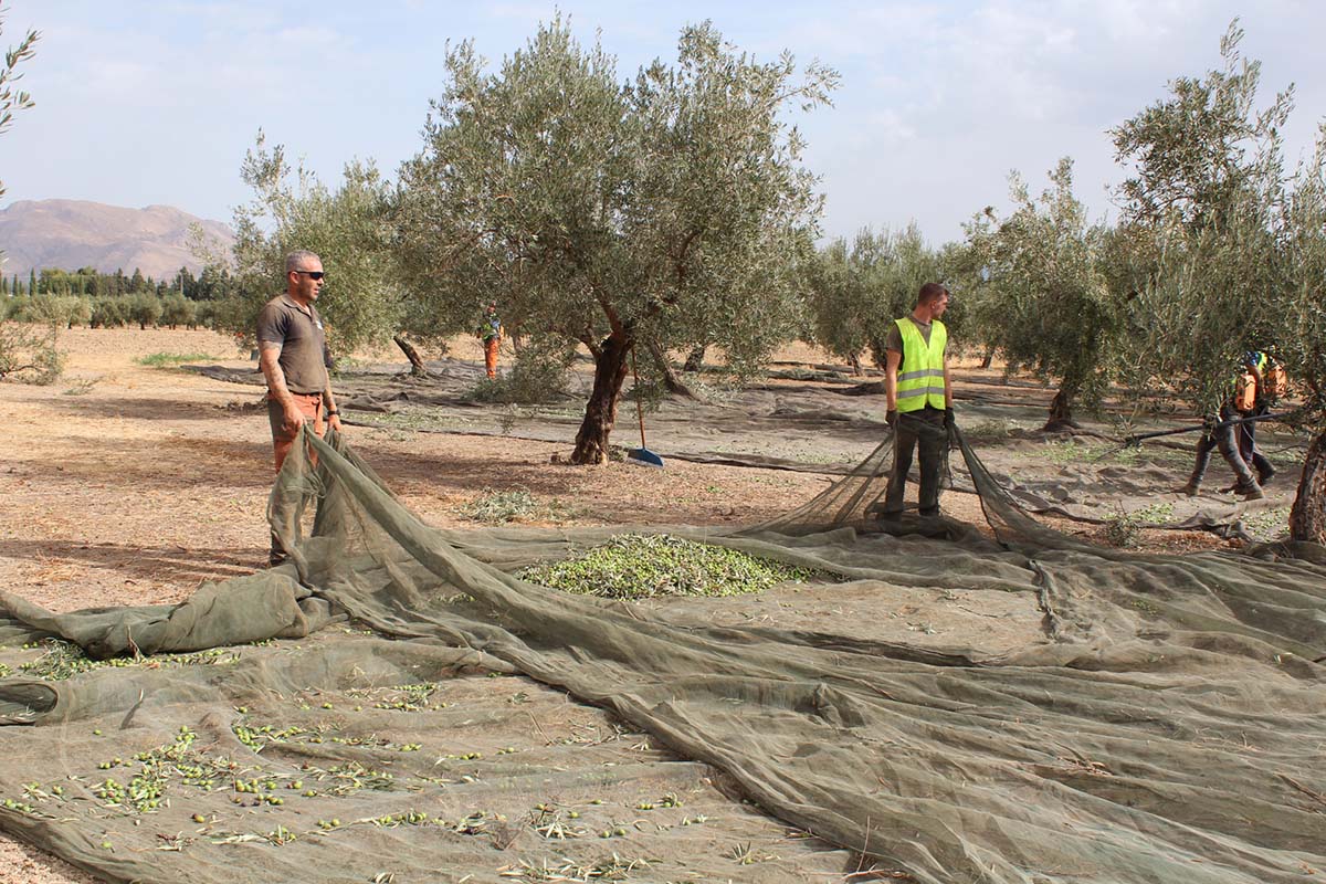 Los fardos son mallas en las que caen las aceitunas y que evitan su contacto con el suelo. Posteriormente estos fardos se pliegan para que el fruto pueda ser transportado en algún tipo de contenedor.