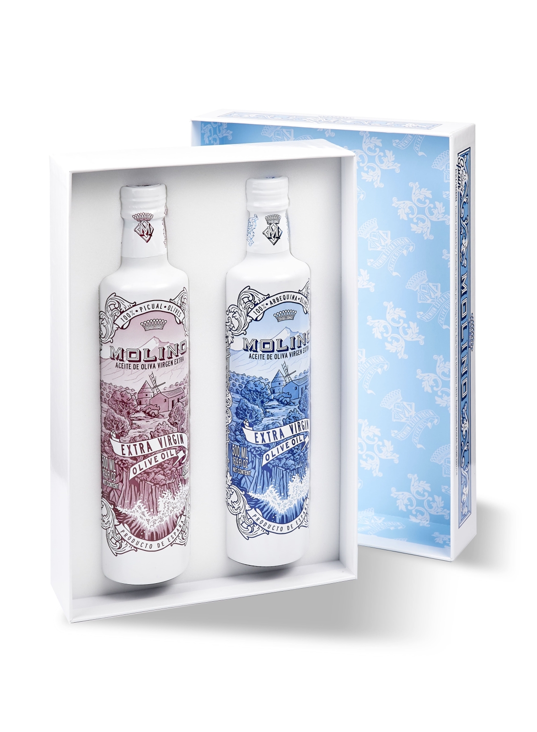 Estuche regalo de Aceite de Oliva virgen extra de nuestra gama Molino que contiene: